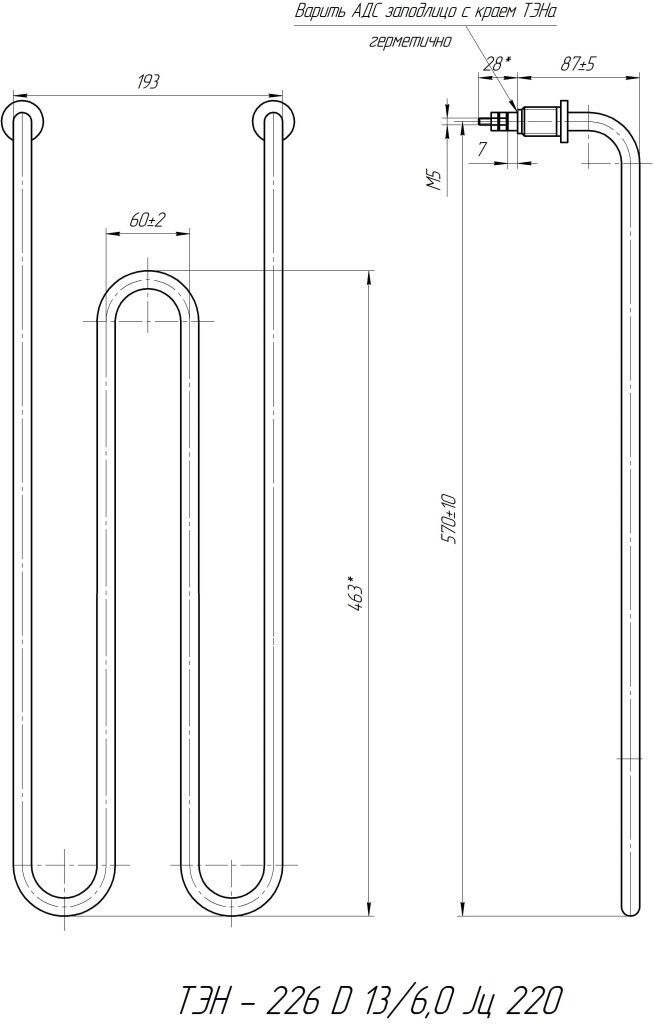 Диаметр ТЭН/мм